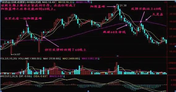 当股价在高位收出阳阴墓碑之后,一旦跌破60日生命线,即宣告头部成立!