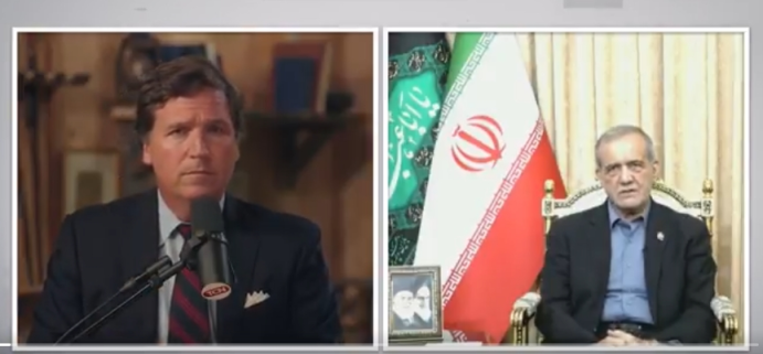 美国媒体人塔克·卡尔森采访伊朗总统佩泽希齐扬,视频截图